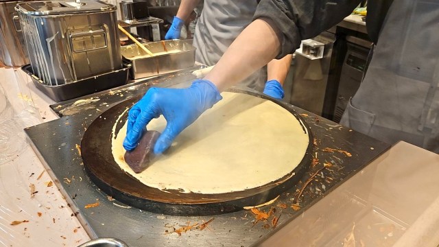 注文を受けると調理がスタート。間近で工程がみれるので楽しい。