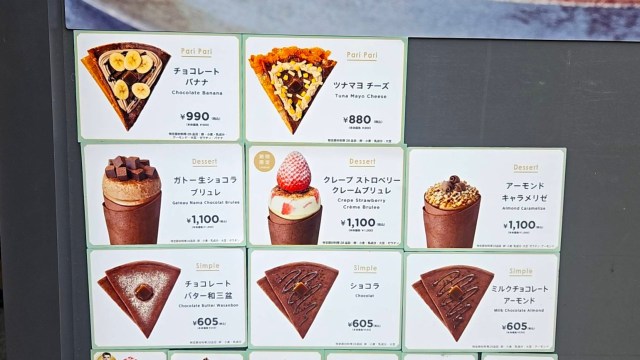 というワケでさっそく足を運んできたのだが、ちょっとビックリするようなメニューが私を待ち構えていた。ツナマヨクレープに……チョコレートのトッピングだと?