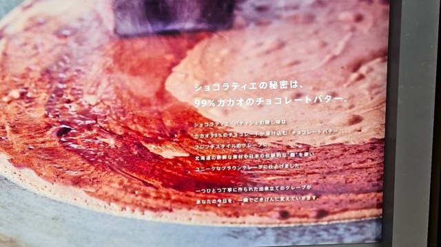 さっそくメニューを確認してみると、チョコレートを生かした美味しそうなクレープが並んでいる。
