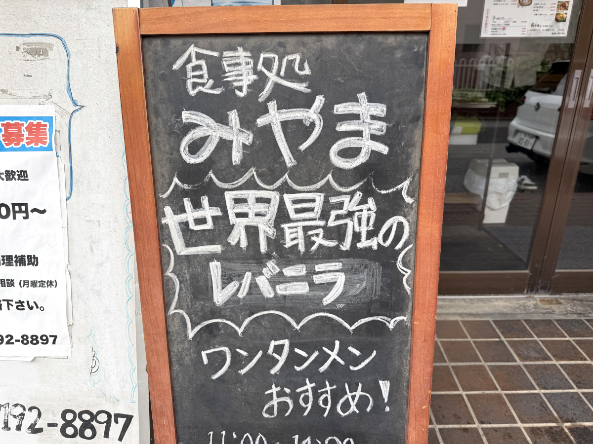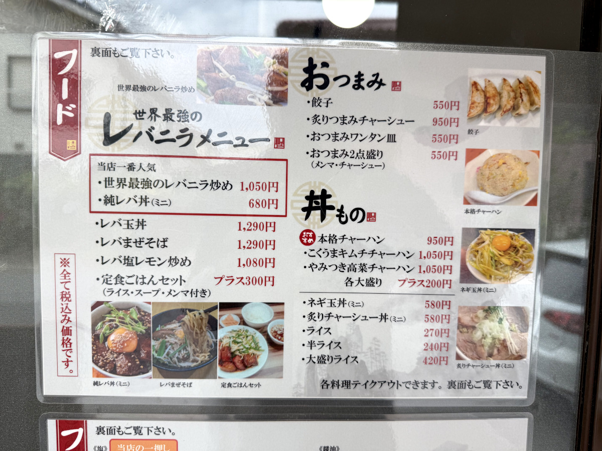 というわけで、南流山駅から徒歩10分弱のところにある『食事処 みやま』へ。ウワサの『世界最強のレバニラ炒め』は1050円で、他にレバーのメニューは「純レバ丼 ミニ(680円)」や「レバまぜそば(1290円)」などがあった。