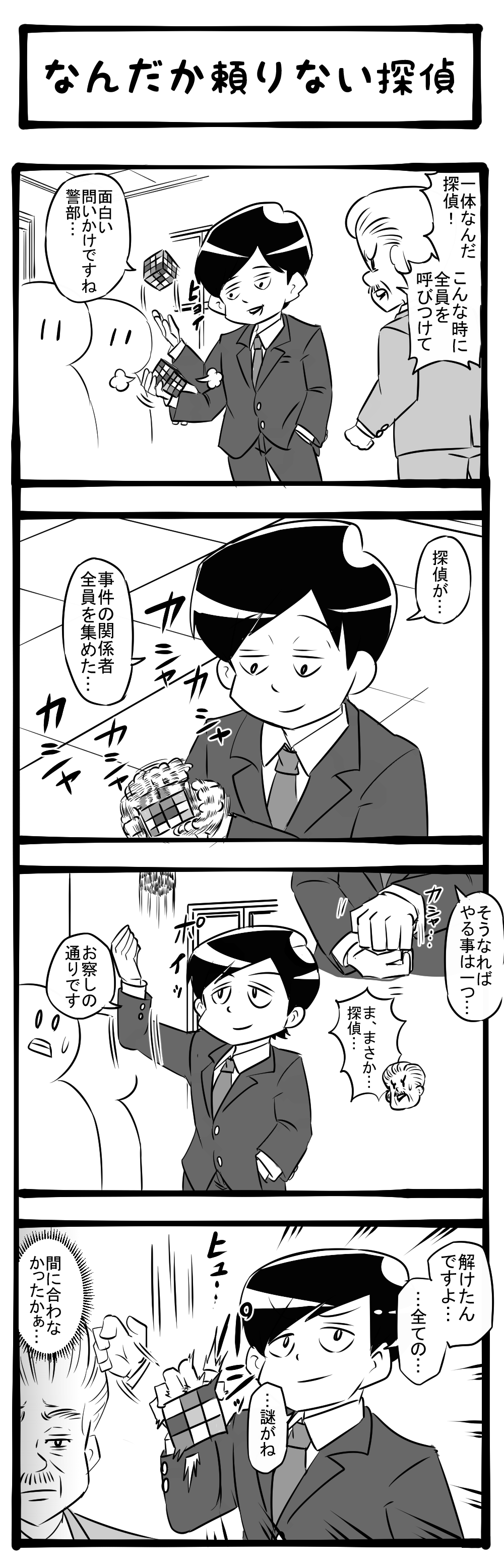 もう少し長くしゃべっていれば! 間に合わなかった探偵! 四コマサボタージュBYD第352回「なんだか頼りない探偵」