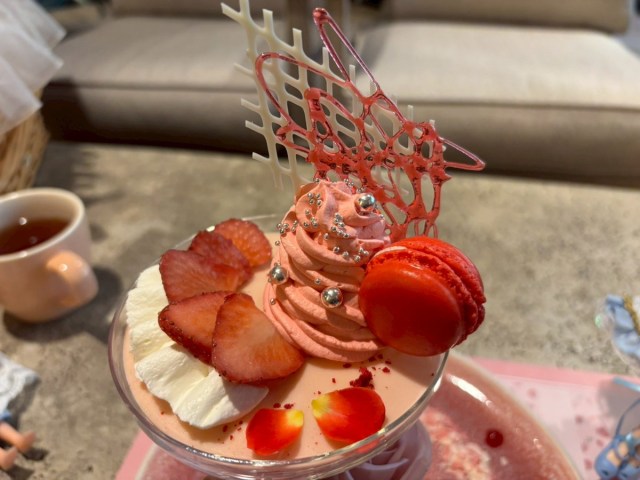アフタヌーンティーのテーマは、いちご × ローズ。ピンクと赤で統一されたスイーツは、見た目の可愛さが先行するかと思いきや、味もちゃんとおいしい。