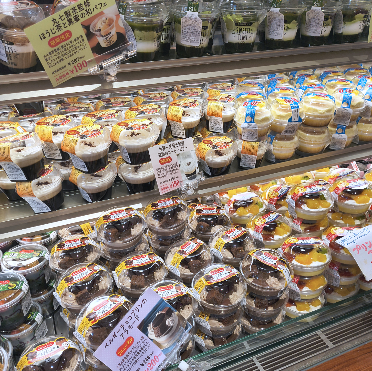 豊富なカップスイーツが100円台からある。もはやコンビニでこんな価格でスイーツを買えないものなあ。高級志向にシフトしていたりして、モノによっては500円台なんてものも珍しくないし。