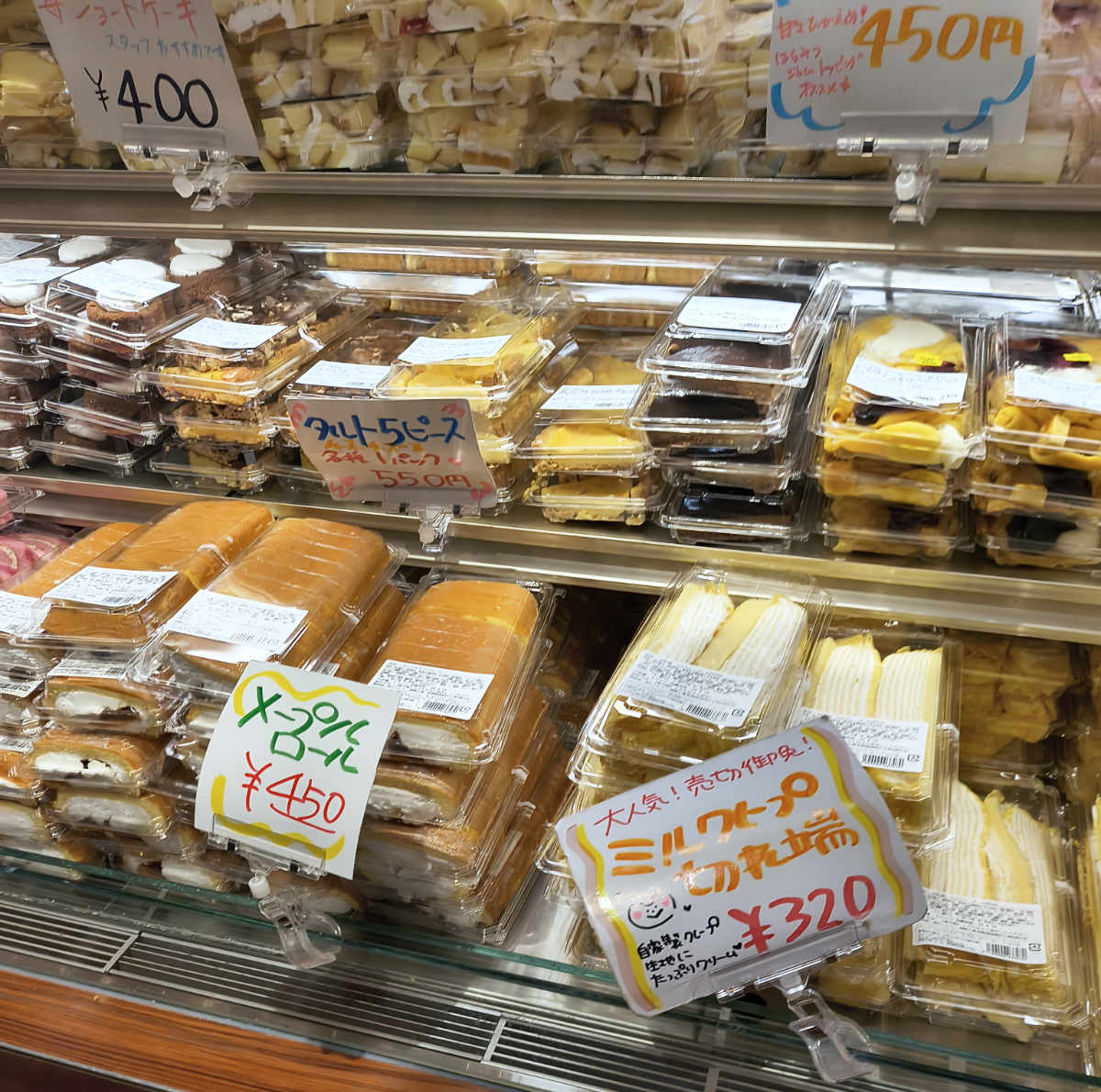 実際に食べてみると、切れ端とはいえ味に変わりがあるわけではない。ミルクレープもロールケーキも、スイーツ欲を満たすのに十分な美味しさである。