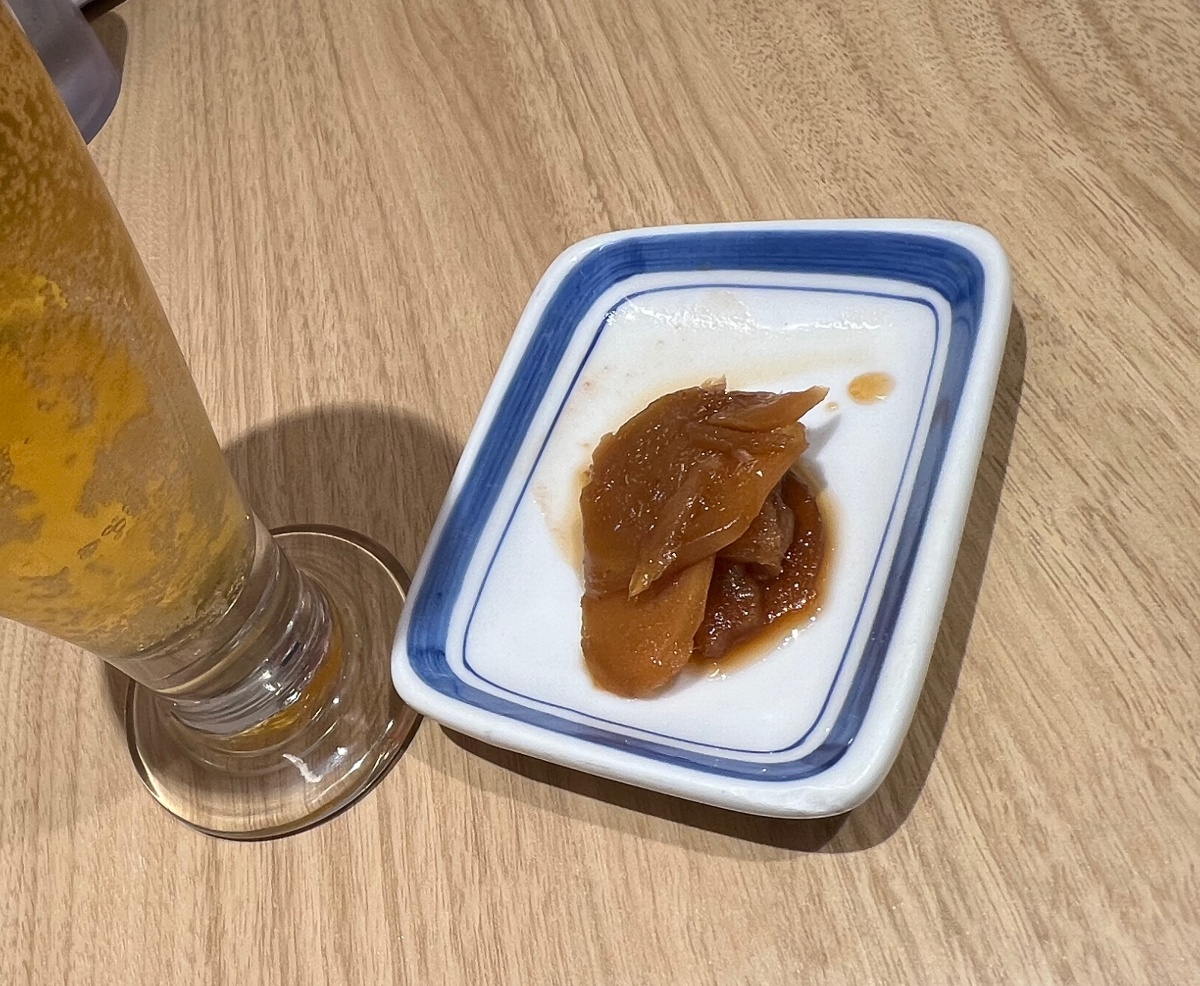 ▼チョイ飲みセットを頼むと、餃子だけでなく生姜を甘く煮たヤツ(甘露煮?)も毎回出て来た。ポスターには書かれてなかったから嬉しい誤算