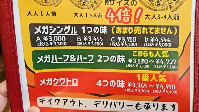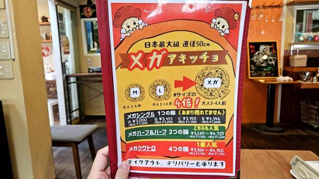 お目当てはもちろん、日本最大級 直径50㎝のピザ『メガアキッチョ』。