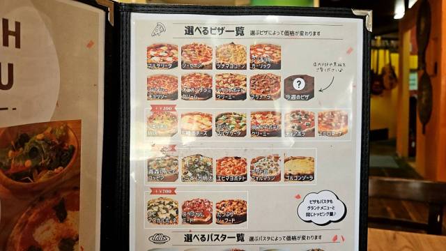 入り口の「ピザランチ1000円」の文字が何とも目を引く。