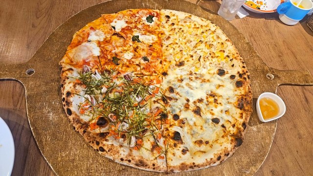今回はクワトロ『マルゲリータ・ゴルゴンゾーラ・ツナマヨコーン・しらすイカ明太(税込4200円)』でお願いしてみた。