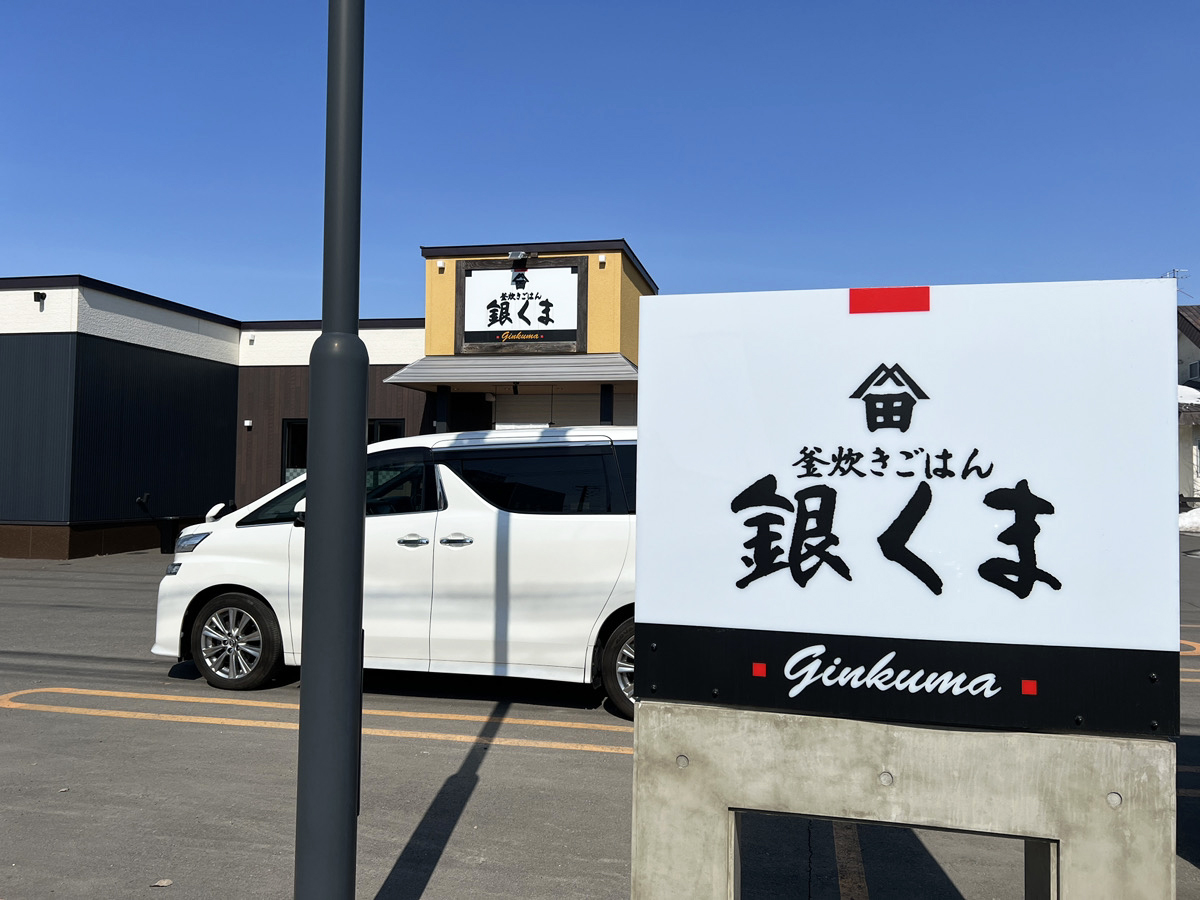 旭川駅前からここまでで約1時間くらいだったから散歩するにもちょうど良い距離である。で、せっかくこっち側に来たから、地元の名店的なポジションの店に入ってみることにした。駐車場に停まってる車の台数から私が地元人気を感じ取ったのは『銀くま』である。
