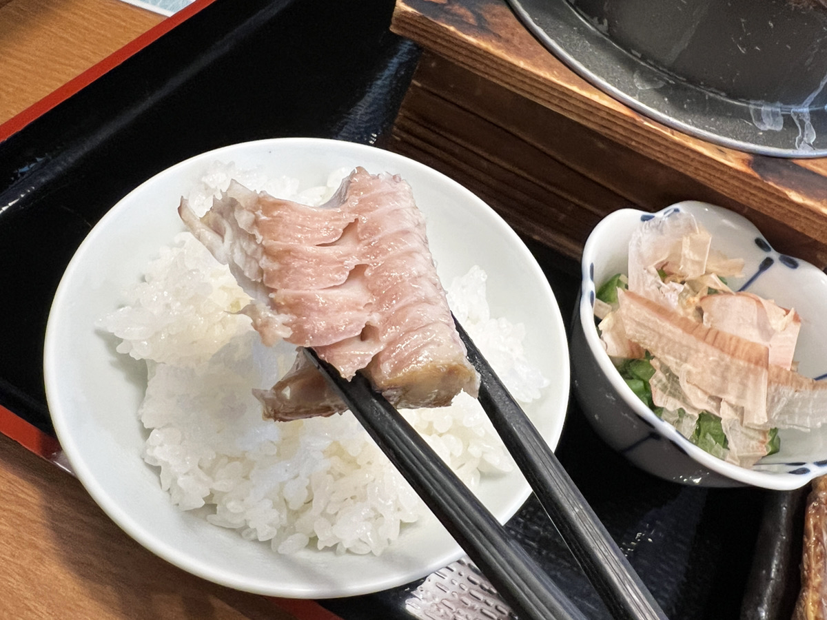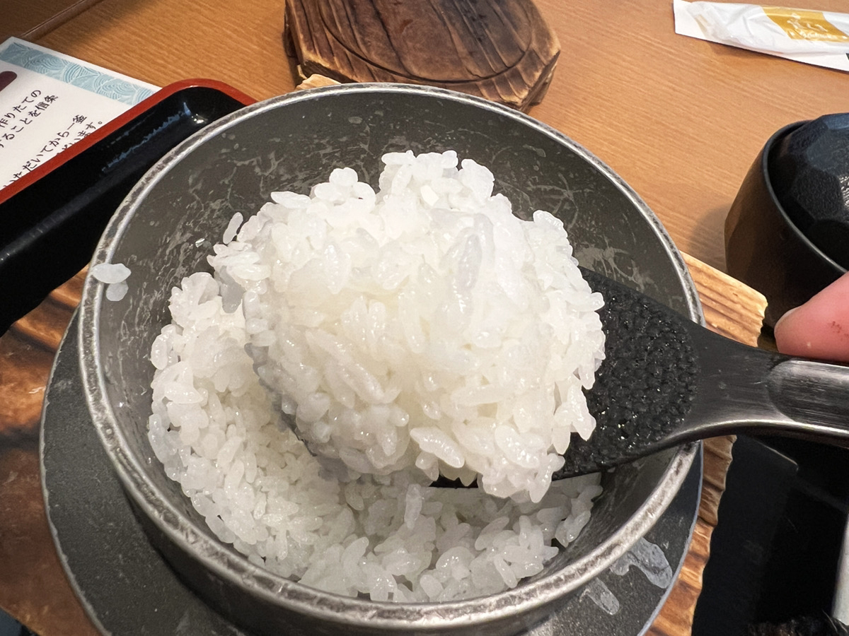 さらにご飯は釜炊きで、ふっくらした食感と甘みが焼き魚の旨みを引き出す。