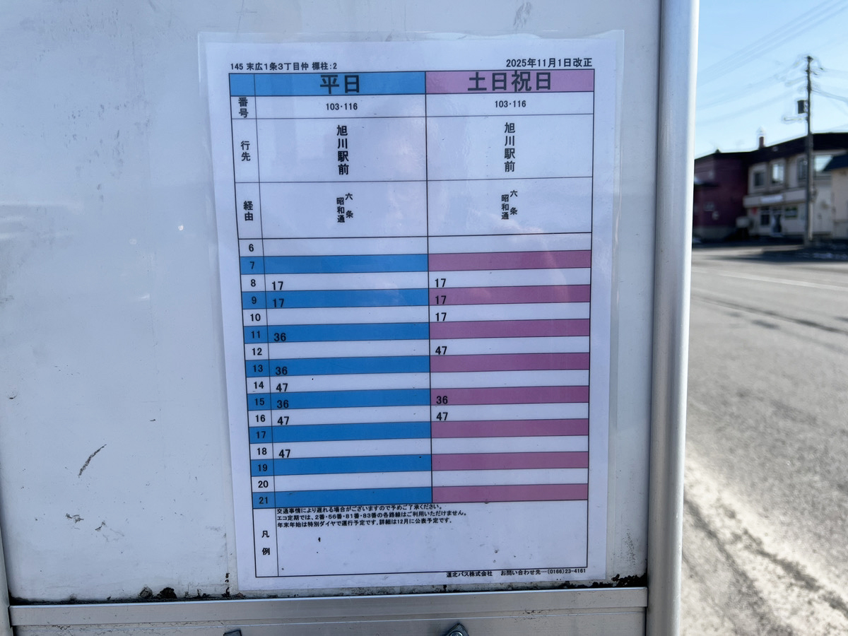 なお、『銀くま』の前にはバス停があって帰りは道北バスで帰ったので、もし『銀くま』だけでも行ってみたいというツーリストがいたら旭川駅前から道北バスで行くのが良いだろう。片道約30分くらいで250円、バス停の名前は「末広1条3丁目」だった。