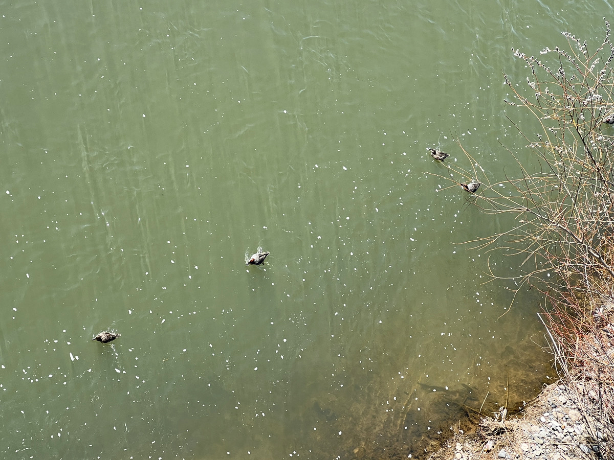 その橋からの景色はさすがに雄大。川を泳ぐ鴨も心なしかのびのびしてる。春だねえ。
