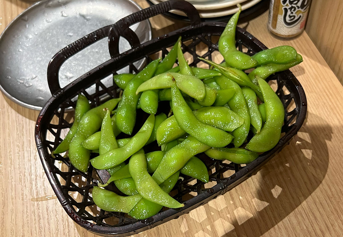 枝豆がテーブルの上に置かれた。え? 枝豆なんて頼んでないよと思って店員さんに確認すると、お通しだという。