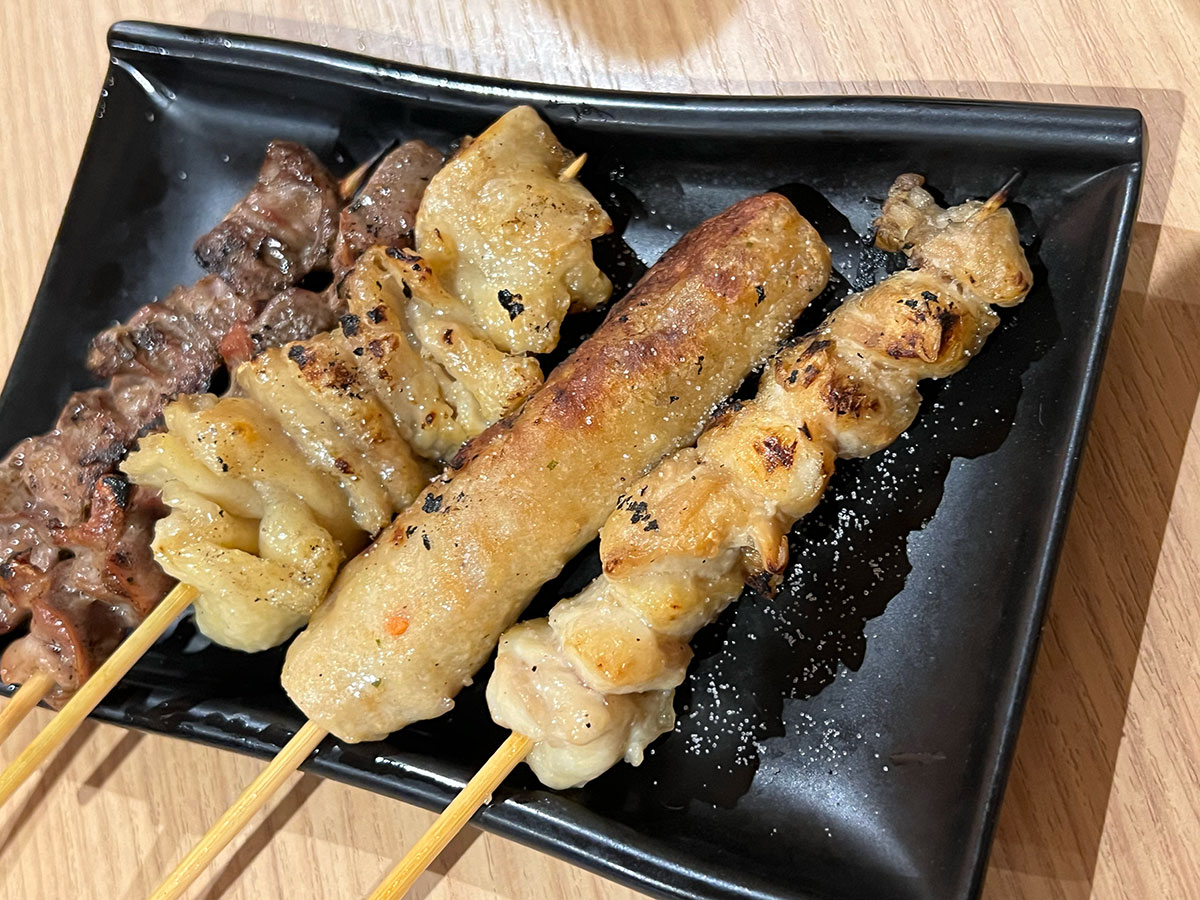 ▼唐揚げの次に満足度が高かった焼き鳥。5本盛り合わせで650円(税抜)