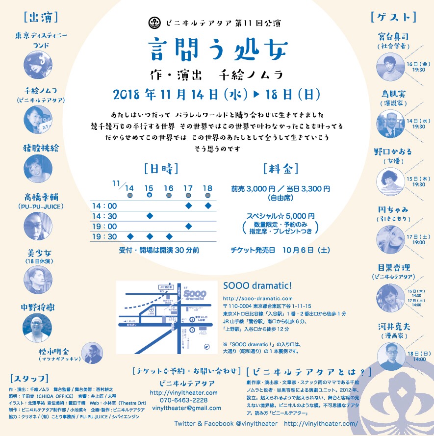 ちなみに、そんな鳥肌実さんがゲスト出演する演劇「ビニヰルテアタア第11回公演 言問う処女」が11月14日(水)に迫っている。一体どんな役で出演されるのか? どんな鳥肌実さんを見られるのか? 気になる人は要チェックだ!