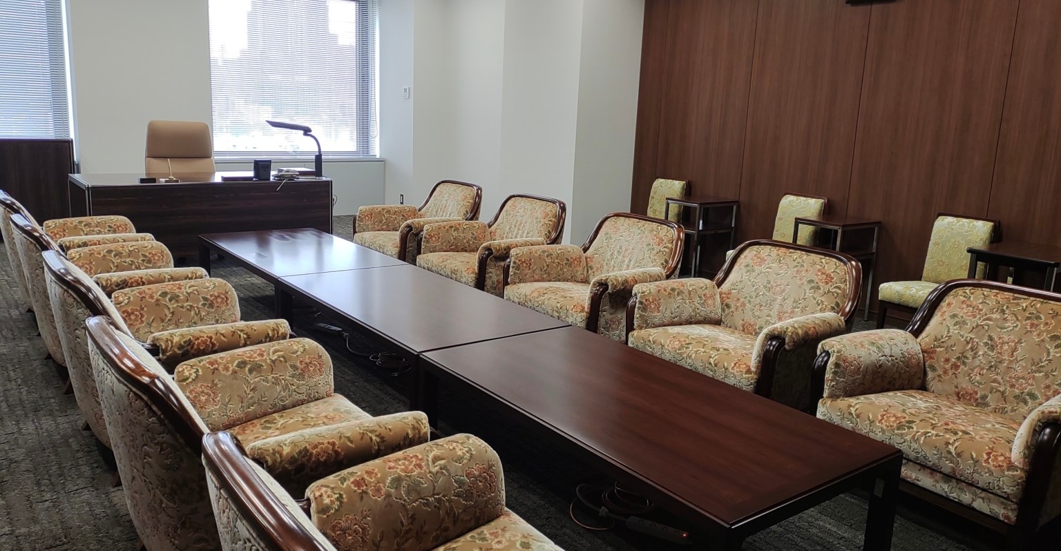 「あの会長席っぽい椅子に座ったら怒られるだろうか?」そんなことを考えながらマッタリしていると……