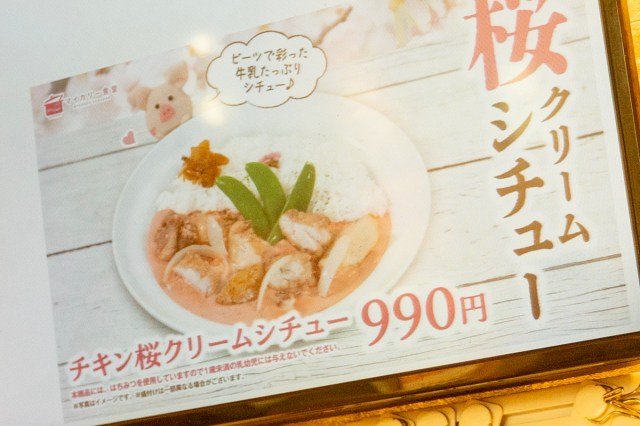 2025年4月9日から松のやで提供が始まった「桜クリームシチュー」。桜をイメージしているのだろう。シチューがピンク色で、どのような味なのか興味深い。